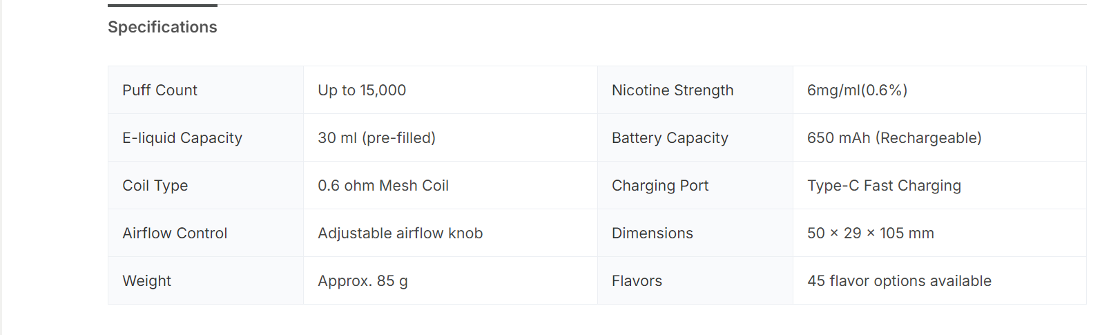- 15000 Puffs + 30ml E-Liquid: No mid-week “out of oil” stress – works for light (few puffs/hour) or heavy vapers.