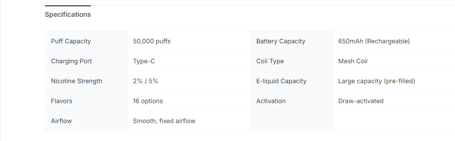 • Up to 50,000 puffs per device